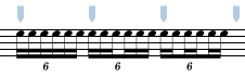 Notice that in each case two additional beams are feathered from the first note in the beam group to the last note in the same beam group.