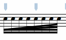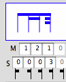 The two series of numbers refer to the number of beams between each staff, and the number of short beams that appear on the right or left of the staff. In the example above, each of the segments have one beam and no short beams. These values can be edited and the Update Display button clicked to display the results (as in the exaple below.)