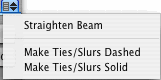 The Straighten Beam menu item (in the small pull-down menu) is used to straighten selected beams so that they are drawn horizontally (i.e. parallel to the staff lines).