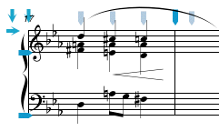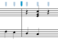 Paste Over operates the same way as Paste Into except that any images located in the area you are pasting into are cleared before the new images are added. This operation is useful for replacing a part of an existing passage with copied selection. In the example below, two beats are pasted over the second and third beats of the measure