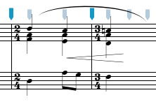 3 - into a passage with different clefs: