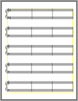 In the examples below the default page is shown on the left and a page with some new settings is displayed on the right. All barlines types, braces types, time signature, and key signatures are displayed in the miniature page display.