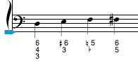 Figured bass symbols (basso continuo) can quickly and easily be added in NoteAbilityPro. Figured bass symbols are a subclass of lyrics, so they are entered and adjusted in a similar way. However, rather than using the Lyric tool, the Insert Image tool is used, and a Figured Bass command is typed followed by the Return key.