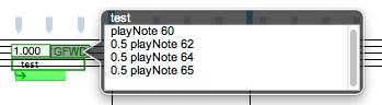 Once you close the GFWD Editor panel, the GFWD object in the score will be altered to show the duration of the embedded events in the GFWD message.