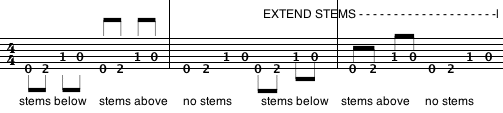 tablature, below the tablature, or to not have stems appear at all. In addition