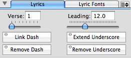 The Verse field can be set to a number from 1 to 8 either by typing in a new number or using the slider. All subsequent lyrics entered will be set to the new verse number. Each verse appears below the previous verse at a distance (in points) set by the leading field. The leading distance can be changed either by typing a new number in the leading field or by using the slider.) Leading values are in points (there are 72 points in an inch) and they can be either positive (below the previous verse) or negative (above the previous verse.) In the examples below, there are three verses displayed with leading values of 12 point and 16 point.