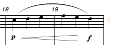 Here, a new graphical slur and crescendo must be added at the beginning of the next measure. To avoid having to re-enter images, it is a good idea to perform all of your system and measure formatting before you adding graphical slurs, lines, trills and other graphics.