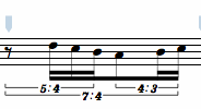 We select and load this passage into the Nested Tuplet Editor and set the tuplets as below: