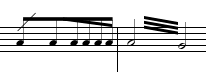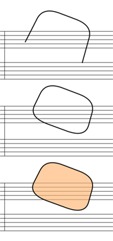 There are a number of tools for drawing complex images: Graphic Slur tool, Crescendo tool, Arpeggio tool, Graphic Beam tool, Trill tool, Multiple Measure Rest tool, Octava tool and Graphic Tuplet tool. These tools are used to draw images that have a horizontal or vertical dimension to them. In each case (except when using the Graphic Slur Tool), you depress the mouse button to start the image, then drag the mouse to the desired height or width and release the mouse button. These images all have two Control Points - one at the beginning of the image and one at the end. Either or both the the Control Points can be adjusted. Since slurs have three Control Points - one at the beginning, one in the middle, and one at the end, an unusual drawing technique is used: