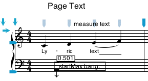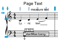 The example below show the four different types of text, and the effect of adjusting the staff and beat positions.
