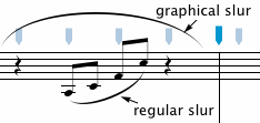 Any of the 5 control points can be altered by selecting them and dragging them to change the shape of the slur. These slurs are purely graphical so they will not divide across systems the way slurs that are added using the Add Slur button are.