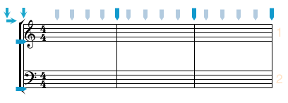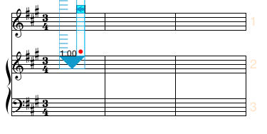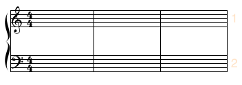 In the following examples, we begin with a system of 3 staves (with staff spacing set to 4 ledger lines.)