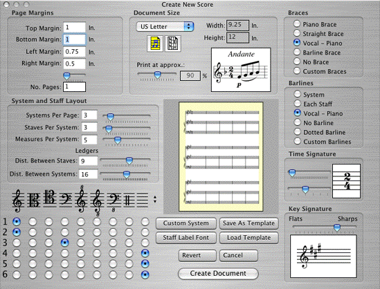 Launch NoteAbility by double-clicking the NoteAbilityPro.app icon. Once the program has loaded, choose New from the File menu. In the Document Setup panel that appears on the screen, alter the following settings by adjusting the sliders and setting radio buttons: