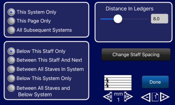 buttons, the Staff Spacing pane gives you more control over the spacing and allows changes to be