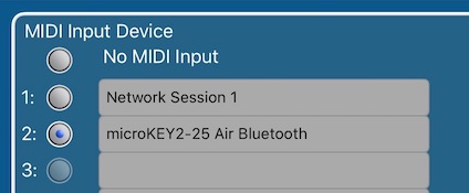 MIDI Input Connections All available MIDI devices capable or sending MIDI data will be listed in the MIDI Input section. You can only have one device set to transmit MIDI note messages to NAPro, and you select the device by clicking on the radio button beside the name the device. If you do not want any MIDI input, then select the first radio button - No MIDI Input. By default, NAPro will receive incoming MIDI messages on channel 1 and they will be entered into the score with the rhythmic values set in the Note Palette. This is commonly referred to as entering in "Step time" with each note or chord being placed at the Entry Cursor with the duration specified in the program. In the example below, the microKey2-25 controller has been sent to send MIDI messages to NAPro. ![]() MIDI Output Connections All available MIDI devices capable or receiving MIDI data from NAPro will be listed in the MIDI Output section. You can have up to 8 different devices receiving MIDI data, and those devices should each be set to a different MIDI bank ( a through h ). To set the MIDI bank used to connect to each device, select the radio button below the bank letter. If you don't want the device used for MIDI output, select the first radio button (labeled "X". In the example below, Network Session 1 will receive MIDI messages on bank a and the microKey2-25 controller will receive MIDI messages on bank b ![]() Once the output banks have been set, you can set specific staves to send data to these banks in the Track Setup panel, which also allows you to set the MIDI channel. In the example below, the first staff will be sending MIDI data to bank a on channel 1 and the second staff will be sending MIDI data to bank b on channel 10. ![]() The Reload Ports button is used to reload all available input and output Midi devices. You may need to do this if a new MIDI device has been connected to your iPad or a Midi device previously being used has been disconnected. Touch the Set MIDI Connections button to dismiss this panel and save the changes, or touch the Cancel button to dismiss the panel without changing the MIDI settings. | |