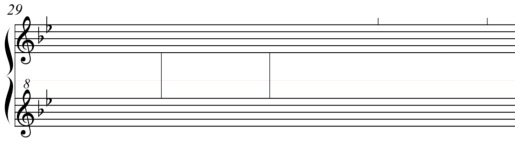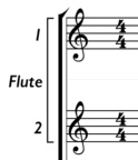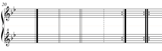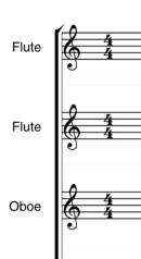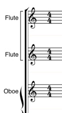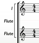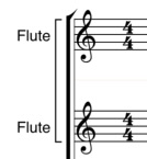 The Join to Staff Above button will extend the barline to the staff above the staff the Entry Cursor is on, and the Break from Staff Above button will separate the barline from the staff above. In the example below some barlines were broken from the staff above: ![]() The Begin Repeat On/Off button is used to add a begin repeat barline to the first measure in a system and should only be added the measure at the beginning of system. Touching the button will add a Begin Repeat barline to the measure that the Entry Cursor is on, and touching the button again will remove the Begin Repeat barline. ![]() The Hide/Show Barline button can be used to hide barlines from being drawn. The two small buttons in the middle of the pane: ![]() are used to convert barlines to Mensurstrich barlines (which are drawn between staves but not through the staves) and to convert barlines to tick barlines which just display a small mark at the top of the top staff in the system. Below we have some mensurstrich barlines and some tick barlines. The same buttons can be used to convert Mensurstsrich or tick barline types back to normal barlines. ![]() Brace Pane ![]() The Brace pane allows you to change the brace type and format of staff braces on the left side of the current system. The controls on this pane allow you to select one of 3 brace types: