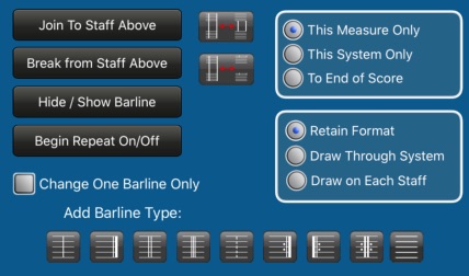 To change the barline type, click on any of the 9 buttons along the bottom of the pane. The last of these buttons will draw no barline. ![]() If you want to change the barline type of just one barline in a complex barline format, check the CHange One Barline Only box before selecting the barline type - only the barline that the Entry Cursor is on will be changed.