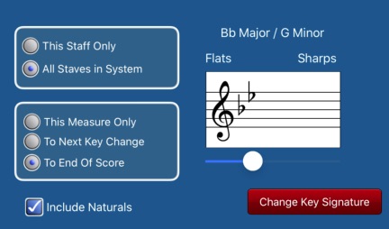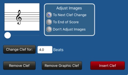 and you can choose to include naturals to cancel the previous key signature or just have the new key signature entered without cancelling the previous key signature. Touch the Change Key Signature button to change to the new key signature starting at the beginning of the measure number that the Entry Cursor is in. In the example below a Bb key signature was entered on all staves, until the end of the score with naturals included. ![]() Clef Pane ![]() The Clef Pane allows you to change the clef on the staff and at the beat position of the Entry Cursor. New clefs can be inserted at any beat position in the score. To add the new clef, touch the Insert Clef button. You can also use this pane to remove a Clef Change that was previously added. To remove a clef change, the Entry Cursor must be on the same beat position the clef was entered - touch the Remove Clef button. If you only want a clef to be inserted for a specific number of beats, you can type the number of beats into the Text Field and choose the Change Clef for: button. When inserting new clefs, the music to the right of the clef will be adjusted to the pitches of the new clef. If, for some reason, you don't want images adjusted, then you can select the Don't Adjust Images button. In the example below and tenor clef was inserted in the score for three beats using the Change Clef for: 3.0 Beats button. ![]() ![]() The Remove Graphic Clef can be used to remove cautionary clefs that have been added to the score in places you don't want them to appear. Select the clef and use this button to remove them. Barline Pane ![]() The Barline pane allows you to change the appearance of the barline that appears at the end of the measure the Entry Cursor is on. When entering new barlines, you should indicate whether the change is for: