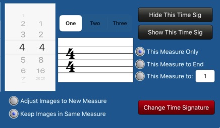For the actual numbering of measures, you can use the Exclude From Count and Include In Count buttons to indicate whether the current measure should increment its number from the previous measure and you can use the Set This Measure To: to force a measure to have a specific number. All measures after the measure you change will be adjusted. This option is useful in situations where your score is divided into several documents and you want to set the first measure of the score so that it continues from the previous document. There are also 2 sets of measure number types - regular numerical values and duration values, which can be selected using the two format buttons. Duration values convert the measure numbers into minutes and seconds, and are specifically designed for spatial scores where each measure is 1 beat long at q = 60. However, you can use the Set This Measure To: button to change the measure number to the number of seconds you want displayed. The example below shows measure number 70 displayed using each format: ![]() If you want to hide a measure number from displaying, you can touch the Hide/Show button to hide the measure number or to show a measure number that had previously been hidden.
