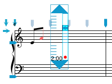 In the example below we are repositioning the notes by moving the first Barline button - notice that all beats in the first measure are stretched and all beats in the second measure are compressed.