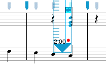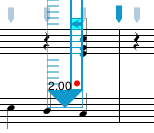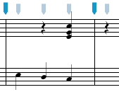 Paste Over operates the same way as Paste Into except that any images located in the area you are pasting into are cleared before the new images are added. This operation is useful for replacing a part of an existing passage with copied selection. In the example below, two beats are pasted over the second and third beats of the measure