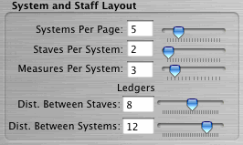 This Distance between Staves and Distance Between Systems settings are automatically calculated as you change the other settings. However, you can alter the calculated settings.