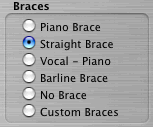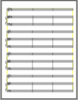 In the examples below the default page is shown on the left and a page with some new settings is displayed on the right. All barlines types, braces types, time signature, and key signatures are displayed in the miniature page display.