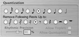 The Quantize radio buttons allow you to quantize different tracks with different sets of quantization values. Once you have correctly quantized a track, turn the Quantize radio button off on that track and the track will no longer be quantized