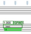 Neither the blue GFWD images nor the KILL images use the GFWD editor - these can be entered directly on the score. In the case of the blue GFWD object, the code is entered directly in the text box below the GFWD image. The Kill objects only contain the name of the LFWD they are stopping. Below are all four objects as they appear in a score.