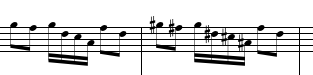 The Ficta On/Off item is used to alter selected notes to either use Musica Ficta or not. Musica Ficta refers to the placement of accidentals above the note rather than to the left of it; this method of positioning accidentals was common in Early Music. If needed regularly, Musica Ficta can be set as a preference (in the Other Tab of the NoteAbilityPro Preference panel). The example below shows a passage followed by the same passage using Ficta accidentals.