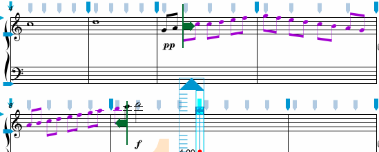 To create arpeggio marks in front of selected notes or chords, select the notes and choose the Build Arpeggio menu item. The arpeggios added using this procedure are purely graphical and have no association with the notes they appear in front of.